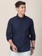 MERCHANT MARINE Men Navy Blue Classic Micro Checks Printed Slim Fit Cotton Casual Shirt